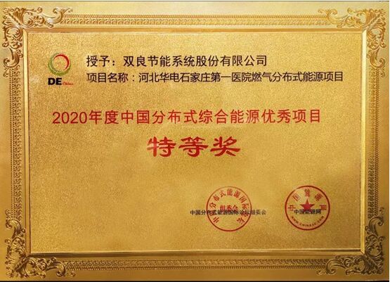 9月17日,2020年度中國(guó)分布式能源優(yōu)秀獎(jiǎng)項(xiàng)頒獎(jiǎng)典禮隆重舉行,雙良節(jié)能憑借石家莊第一醫(yī)院天然氣分布式能源項(xiàng)目,榮獲“2020年度中國(guó)分布式能源優(yōu)秀項(xiàng)目特等獎(jiǎng)”。