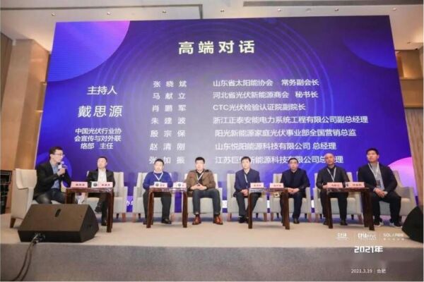 中國(guó)光伏行業(yè)協(xié)會(huì)宣傳與對(duì)外聯(lián)絡(luò)部主任戴思源主持上午的對(duì)話(huà)環(huán)節(jié)。山東省太陽(yáng)能協(xié)會(huì)常務(wù)副會(huì)長(zhǎng)張曉斌、河北省光伏新能源商會(huì)秘書(shū)長(zhǎng)馬獻(xiàn)立、CTC光伏檢驗(yàn)認(rèn)證院副院長(zhǎng)肖鵬軍,浙江正泰安能電力系統(tǒng)工程有限公司副總經(jīng)理朱建波、陽(yáng)光新能源家庭光伏事業(yè)部全國(guó)營(yíng)銷(xiāo)總監(jiān)殷宗保、山東悅陽(yáng)能源科技有限公司總經(jīng)理趙清剛,江蘇巨擘新能源科技有限公司總經(jīng)理張加振參加本次對(duì)話(huà)環(huán)節(jié)。與會(huì)嘉賓對(duì)重點(diǎn)省份戶(hù)用光伏市場(chǎng)分析與預(yù)測(cè)、平價(jià)時(shí)代戶(hù)用光伏品牌企業(yè)發(fā)展戰(zhàn)略、戶(hù)用光伏電站質(zhì)量標(biāo)準(zhǔn)體系、“孤兒電站”售后運(yùn)維管理、進(jìn)行交流并對(duì)平價(jià)時(shí)代戶(hù)用光伏的商業(yè)模式進(jìn)行討論。