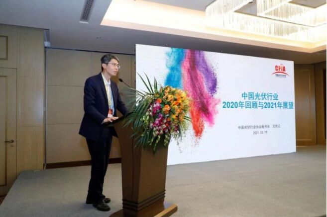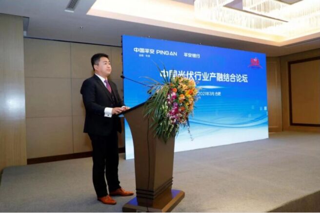 為落實(shí)碳中和戰(zhàn)略、發(fā)力綠色金融,3月19日,平安銀行聯(lián)合中國光伏行業(yè)協(xié)會在合肥舉辦中國光伏行業(yè)產(chǎn)融結(jié)合論壇,并聯(lián)合協(xié)會和平安證券發(fā)布《中國光伏行業(yè)分析及圖覽(2021)》。本次會議,共有來自國家發(fā)改委、行業(yè)協(xié)會的專家及來自大唐集團(tuán)、中節(jié)能集團(tuán)、云南能投、阿特斯、陽光電源、天合光能、特變電工、晶科能源、東方日升、通威集團(tuán)等20余家行業(yè)頭部企業(yè)高管參會。