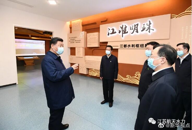 習近平總書記考察江都水利樞紐工程現(xiàn)場 (圖片來源:新華視點)