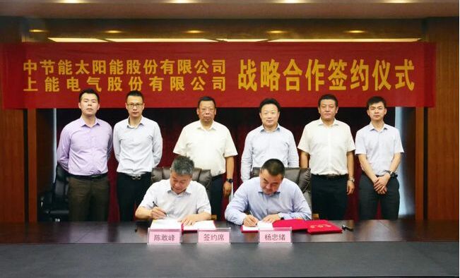 6月16日,上能電氣與中節(jié)能太陽(yáng)能在無(wú)錫簽署戰(zhàn)略合作協(xié)議,旨在相互促進(jìn)、共贏發(fā)展。中節(jié)能太陽(yáng)能股份有限公司黨委書(shū)記、董事長(zhǎng)曹華斌,副總經(jīng)理?xiàng)钪揖w,上能電氣股份有限公司董事長(zhǎng)吳強(qiáng)、常務(wù)副總裁陳敢峰等雙方領(lǐng)導(dǎo)共同出席了簽約儀式,并進(jìn)行友好會(huì)談。