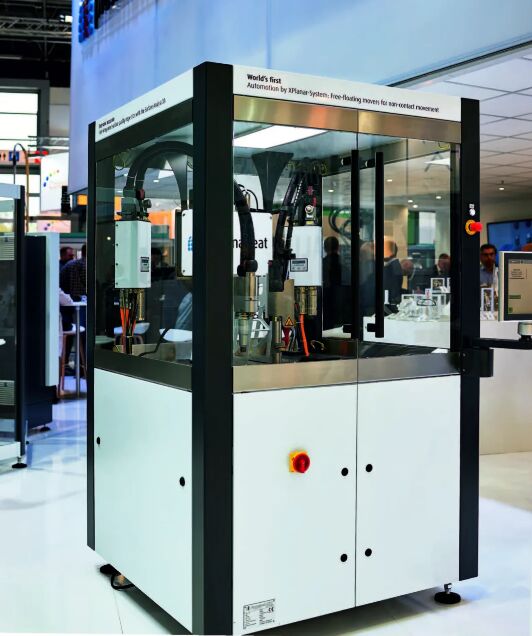 總部位于德國(guó)施泰因哈根的 Plasmatreat 有限責(zé)任公司是一家專為高效表面處理和環(huán)保生產(chǎn)工藝提供等離子體系統(tǒng)的制造商,公司在去年的 2019 年德國(guó)杜塞爾多夫橡塑展 K 展上展出了一款全新的等離子體處理裝置。該處理裝置創(chuàng)造性地采用了倍福的 XPlanar 平面磁懸浮輸送系統(tǒng)實(shí)現(xiàn)高精度和靈活的工件輸送。XPlanar 取代了以前用于輸送 PCB 板等敏感元件的系統(tǒng),并且無需安裝復(fù)雜的六軸機(jī)器人和直線電機(jī)。 等離子體處理裝置可以將不同材料的表面處理分為兩個(gè)階段,Plasmatreat 的設(shè)計(jì)負(fù)責(zé)人 Jochen Stichling 闡述道:“在第一階段,基板被移動(dòng)到噴嘴下方進(jìn)行清潔和活化。在第二階段,用噴嘴噴涂功能性涂層!彼忉,公司在這方面一直專注于創(chuàng)新:“我們需要一個(gè)處理速度快、完全可編程且無磨損的系統(tǒng)來輸送工件。而在定制化編程軌跡和行程方面,倍福的 XPlanar 平面磁懸浮輸送系統(tǒng)是不二之選。” 由可自由懸浮的動(dòng)子組成的平面電機(jī)輸送系統(tǒng) XPlanar 平面磁懸浮輸送系統(tǒng)將可以隨意排列的傳輸平面模塊與懸浮在其上方的動(dòng)子托盤的多維定位能力完美結(jié)合于一體,可以實(shí)現(xiàn)快速、靈活及高精度定位。動(dòng)子可以在二維平面上進(jìn)行無摩擦、無接觸的運(yùn)動(dòng),最高速度可達(dá) 4 m/s,加速度可達(dá) 2 g,重復(fù)定位精度可達(dá) 50 μm;運(yùn)行過程中幾乎不會(huì)產(chǎn)生任何噪音或機(jī)械磨損。該系統(tǒng)不僅支持二維 X/Y 空間內(nèi)的定位運(yùn)動(dòng),還提供在必要時(shí)讓動(dòng)子做六自由度運(yùn)動(dòng)的附加功能: – 最大 5 mm 的升降運(yùn)動(dòng)(空載), 可選擇稱重功能 – 最大 5° 傾斜運(yùn)動(dòng),用于處理液體的輸送 – 最大 ±15° 的旋轉(zhuǎn)或者在特定傳輸平面模塊上 360° 的旋轉(zhuǎn); Plasmatreat 等離子體表面處理設(shè)備中使用的 XPlanar 輸送系統(tǒng)由 6 個(gè) 240 x 240 mm 的平面模塊和 1 個(gè)動(dòng)子托盤組成。