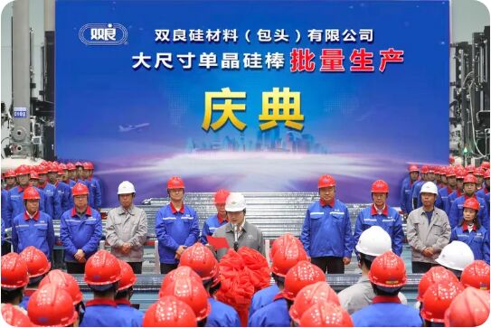 今天,在大家的努力下,我們?nèi)〉昧顺醪匠煽儭N覀円呀?jīng)建成了硅材料公司的經(jīng)營隊伍、管理隊伍、技術隊伍。有了隊伍,就能帶領全體員工圓滿完成公司交予的任務。雙良硅材料是新進入該產(chǎn)業(yè)鏈的企業(yè),我們要向同行企業(yè)學習、請教、交流,共同提高技術、管理水平。雙良積累了39年的經(jīng)驗,每一個產(chǎn)業(yè)都經(jīng)歷過了激烈的市場競爭,經(jīng)受了市場的考驗。我們現(xiàn)在基本都做到了成為各個行業(yè)的品牌和龍頭。希望硅材料公司在我們領導班子、經(jīng)營班子的帶領下,在全體員工的努力下,走出我們自己的路,要做行業(yè)的前三位,在品質(zhì)、成本控制上下功夫。這個平臺是我們大家的,我相信大家加盟雙良,對雙良是充滿信心,充滿希望的。雙良事業(yè)需要大家加大力度、加倍努力,才能不斷壯大、健康發(fā)展。感謝全體員工共同努力,希望大家戒驕戒躁,祝大家取得新的輝煌! “雙碳”目標下,可再生能源發(fā)展升至戰(zhàn)略高度。隨著光伏發(fā)電進入平價時代,光伏裝機量進入快速擴張期,同時,上游硅料行業(yè)也進入密集擴產(chǎn)周期,高效率的單晶硅領域成為競爭熱點,而能有效實現(xiàn)全行業(yè)降本增效的大尺寸硅片市場更是一片藍海,并代表著光伏未來發(fā)展的主流方向。 內(nèi)蒙古包頭市是連接華北和西北的重要工業(yè)城市,被譽為草原明珠。當?shù)毓饽苜Y源豐富,擁有全國光伏平均利用時間高和相關產(chǎn)業(yè)大量政策性支持的突出優(yōu)勢。作為包頭市政府招商引資的重點項目,雙良40GW單晶硅項目(一期20GW拉晶),總占地面積近800畝,總投資達140億元,配套先進的自動化設備,其中包括技術領先的單晶爐,整個項目規(guī)劃要在2023年全面達產(chǎn)達標。 圍繞單晶硅項目建設,雙良憑借在能源行業(yè)沉淀下的高效管理運營體系和市場開發(fā)團隊,發(fā)揮技術與管理優(yōu)勢,以高起點、高規(guī)格、高標準規(guī)劃、設計,并實現(xiàn)了超預期推進。從正式簽約、破土動工、成功點火,到硅棒出爐、批量生產(chǎn),歷時206天,如期實現(xiàn)項目建設各個節(jié)點,展現(xiàn)了雙良硅材料全體干部員工高效率、高質(zhì)量的工作作風,充分體現(xiàn)了雙良人面對一切困難敢拼肯干的優(yōu)良傳統(tǒng)。