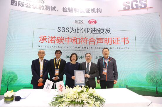 比亞迪獲頒國內(nèi)首張SGS承諾碳中和符合聲明證書