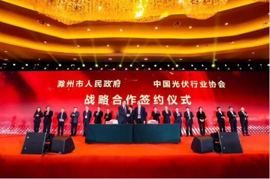 滁州市人民政府常務(wù)副市長鄧?yán)^敢、中國光伏行業(yè)協(xié)會秘書長王世江共同簽署戰(zhàn)略合作協(xié)議。雙方將在產(chǎn)業(yè)規(guī)劃、招商引資、會議活動、實(shí)證基地、項(xiàng)目孵化、碳交易市場和產(chǎn)業(yè)發(fā)展基金等方面開展深層次全方位多領(lǐng)域的長效合作機(jī)制。