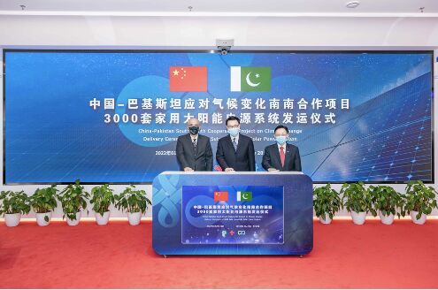 中國始終高度重視應(yīng)對氣候變化工作,在堅決走綠色低碳發(fā)展道路的同時,近年來通過多種形式的南南務(wù)實合作,盡己所能幫助發(fā)展中國家提高應(yīng)對氣候變化能力,已與36個發(fā)展中國家簽署41份應(yīng)對氣候變化合作文件。中巴兩國建交70年以來,始終患難與共、同舟共濟(jì)。兩國于2021年7月簽署南南合作諒解備忘錄,中方向巴方援助3000套太陽能光伏電源系統(tǒng),幫助巴方提高應(yīng)對氣候變化能力。雙方將共同努力確保該批物資實現(xiàn)其低碳環(huán)保價值,為中巴經(jīng)濟(jì)走廊建設(shè)和巴方應(yīng)對氣候變化作出貢獻(xiàn)。