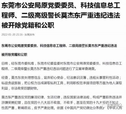 據(jù)東莞新聞報道,2021年10月莫杰東被立案審查后,對犯罪事實供認不諱,初步確認貪污受賄高達6000多萬,還牽扯出一大批貪官。原來此人利用手中的公權(quán)力(可以監(jiān)聽、錄影、調(diào)用、刪除東莞市的監(jiān)控系統(tǒng)),以此販賣或威脅當(dāng)事人的監(jiān)控視頻,并從而謀取巨大私利。