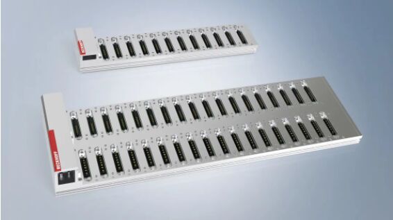 底板有不同的版本可供選擇。緊湊型控制解決方案可以通過高度僅為 110 毫米的帶有功能模塊數(shù)據(jù)接口的 1 排版本底板接入主電源來實現(xiàn)。所需的 24 V 電源和工業(yè) PC 都包含在功能模塊中。2 排版本的底板包括數(shù)據(jù)接口和底層電源接口。倍福將推出更多的底板版本,比如排內(nèi)混合各種接口的版本,以及可以布置為三排的擴展版本,用于插接性能更強大的驅(qū)動模塊。
