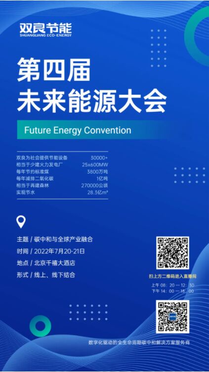 7月20-21日,由中國能源研究會、中能網(wǎng)主辦的“第四屆未來能源大會”將在北京拉開帷幕。雙良節(jié)能將出席此次峰會,邀您共聚北京第四屆未來能源大會,攜手助力碳中和與全球產(chǎn)業(yè)融合。