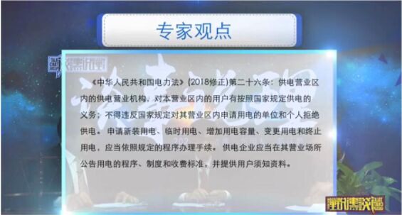 在專題節(jié)目中,北京林業(yè)大學(xué)教授楊朝霞發(fā)表觀點(diǎn):我們說二十幾年來,他80%的電是他自己發(fā)電的,就是東莞市供電公司不給。這個(gè)來說是違法的。因?yàn)槲覀兊摹峨娏Ψā肥敲鞔_規(guī)定的,就是電力公司、電力的供電機(jī)構(gòu)是有給用戶供電的強(qiáng)制的義務(wù)的。你不能拒絕供電,如果是拒絕供電,那麼就是違法,正常供電就是你的強(qiáng)制義務(wù)。