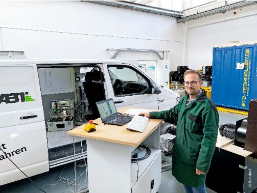 肯普滕應(yīng)用技術(shù)大學(xué)的試驗(yàn)臺(tái)正在測試一輛由 ABT 公司完成電動(dòng)轉(zhuǎn)型的大眾廂式車