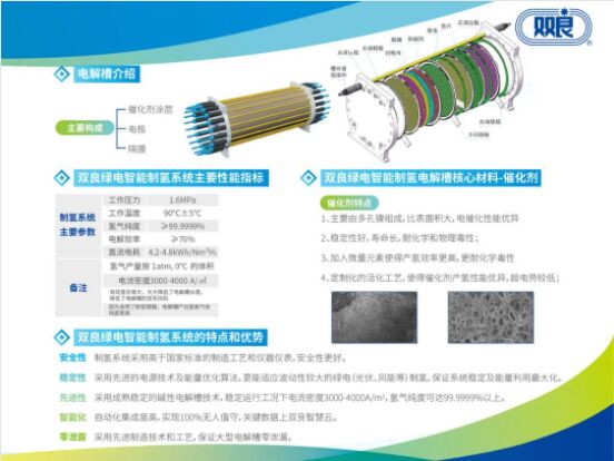 以綠電制氫零碳技術(shù)助力新能源替代,是實(shí)現(xiàn)碳中和的重要驅(qū)動(dòng)力。由雙良自主研發(fā)的“綠電智能制氫系統(tǒng)”,分為“高性能電解槽、氣液分離裝置、純化裝置和電源”四大核心部分,具有制備量大、智能、安全、可靠等顯著優(yōu)勢(shì),采用高電流密度設(shè)計(jì)的電解槽最大制備量可達(dá)1000Nm3/h,通過氣液分離裝置將堿液沉降分離后,經(jīng)過提純的氫氣純度可達(dá)到99.9999%以上,真正實(shí)現(xiàn)無污染、零排放、低成本?蓮V泛應(yīng)用于煤化工與石化、鋼鐵與冶金、合成氨等工業(yè)領(lǐng)域與民用領(lǐng)域,減少碳排放,助力用能終端實(shí)現(xiàn)“雙碳”目標(biāo)。