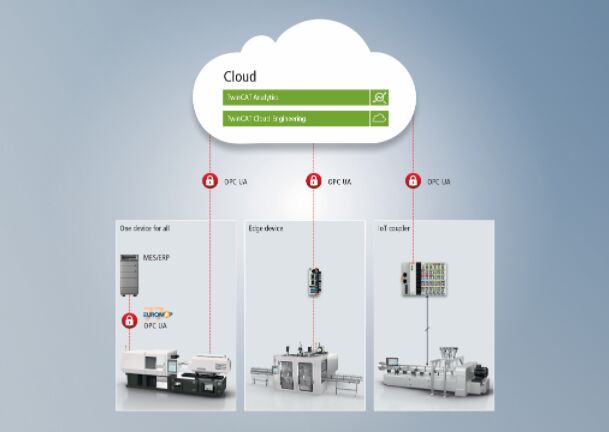 基于 PC 的控制技術(shù),即倍; PC 和 EtherCAT 的控制與驅(qū)動(dòng)技術(shù),為提升塑料加工設(shè)備和系統(tǒng)的可持續(xù)性提供了巨大潛力。軟件基于 TwinCAT 3 Plastic Framework 、 TwinCAT Analytics 數(shù) 據(jù) 分 析 解 決 方 案 和 基 于TwinCAT OPC UA 通信協(xié)議的 Euomap 標(biāo)準(zhǔn)。在硬件方面,例如,用于能源監(jiān)測(cè)的 EtherCAT 端子模塊和伺服電機(jī)、驅(qū)動(dòng)作為液壓方案的替代方案,發(fā)揮了至關(guān)重要的作用。