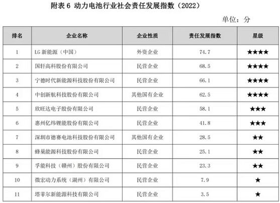 《企業(yè)社會(huì)責(zé)任藍(lán)皮書》由中國社會(huì)科學(xué)院社會(huì)責(zé)任研究中心編制,是目前中國企業(yè)社會(huì)責(zé)任領(lǐng)域最具影響力的研究成果!捌髽I(yè)社會(huì)責(zé)任發(fā)展指數(shù)(2022)”基于“通用指標(biāo)+行業(yè)特色指標(biāo)”評(píng)價(jià)體系,以企業(yè)性質(zhì)、所在行業(yè)為劃分標(biāo)準(zhǔn),對(duì)企業(yè)社會(huì)責(zé)任信息進(jìn)行內(nèi)容及定量分析的指數(shù)評(píng)價(jià)。LG新能源在綠色管理、綠色生產(chǎn)、綠色運(yùn)營的環(huán)境責(zé)任版塊,伙伴、員工、社區(qū)的社會(huì)責(zé)任版塊,責(zé)任管理的責(zé)任融合版塊,以及本質(zhì)責(zé)任的客戶責(zé)任板塊摘取八項(xiàng)最高評(píng)分,總評(píng)分名列榜首。此次排名的蟬聯(lián)及獎(jiǎng)項(xiàng)的殊榮,既是對(duì)LG新能源在社會(huì)責(zé)任領(lǐng)域取得成效的有利認(rèn)可,也是對(duì)LG新能源作為動(dòng)力電池行業(yè)的領(lǐng)軍企業(yè),在可持續(xù)發(fā)展和綠色產(chǎn)能方面做出貢獻(xiàn)的肯定。