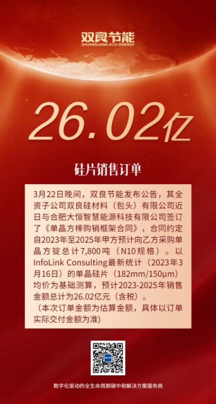 公司大尺寸單晶硅片產(chǎn)品市場開拓順利,本合同的簽訂標志著公司的大尺寸N型單晶硅相關(guān)產(chǎn)品獲得了下游優(yōu)質(zhì)客戶及市場的認可,對公司N型單晶硅業(yè)務(wù)形成長期穩(wěn)定的銷售有著積極影響。本合同履行期限為2023年至2025年,有利于提高公司本年度及未來公司N型單晶硅產(chǎn)品的銷售收入,并有利于穩(wěn)定經(jīng)營現(xiàn)金流。