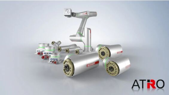 ATRO 系統(tǒng)是一款模塊化的工業(yè)機(jī)器人系統(tǒng),用戶可以根據(jù)不同的機(jī)器人運(yùn)動(dòng)學(xué)應(yīng)用需求靈活組合。該系統(tǒng)的一大亮點(diǎn)是機(jī)械臂內(nèi)部集成了數(shù)據(jù)、動(dòng)力及流體的介質(zhì)傳輸接口,因此所有軸都能夠雙向無限制旋轉(zhuǎn)。