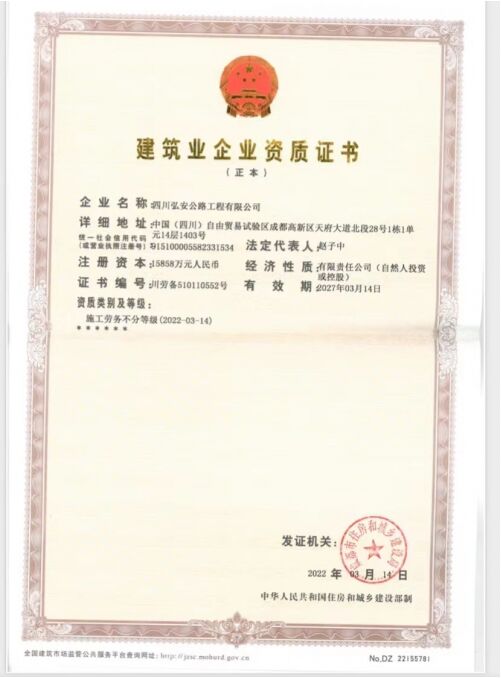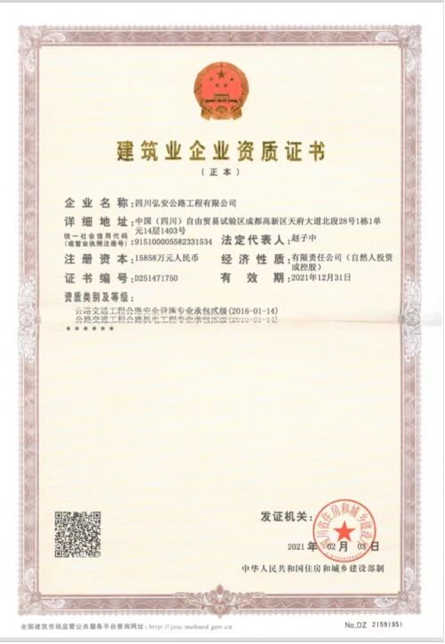 弘安公路前身是成都利發(fā)交通設(shè)施有限公司,成立于2000年,目前已發(fā)展成集研發(fā),生產(chǎn),施工于一體的綜合性高新技術(shù)企業(yè)。經(jīng)過(guò)長(zhǎng)年累月、鍥而不舍地大量改革,科學(xué)技術(shù)創(chuàng)新,弘安公路研發(fā)了十三項(xiàng)實(shí)用新型專利和發(fā)明專利,包括《道路收費(fèi)系統(tǒng)》,《交通標(biāo)志牌的新型材料》,《波形護(hù)欄防撞氣囊》,《新型隔音墻(吸塵,吸音)》,《汽車(chē)油箱防盜油》等等專利產(chǎn)品,在交通設(shè)施,交通工程,交通工具等方面提供了更為低碳環(huán)保的方案及產(chǎn)品,為全世界人類做出更大貢獻(xiàn)。目前公司的資質(zhì)有《交通工程總承包二級(jí)》,《機(jī)電工程總承包二級(jí)》,《勞務(wù)資質(zhì)》不分等級(jí)。