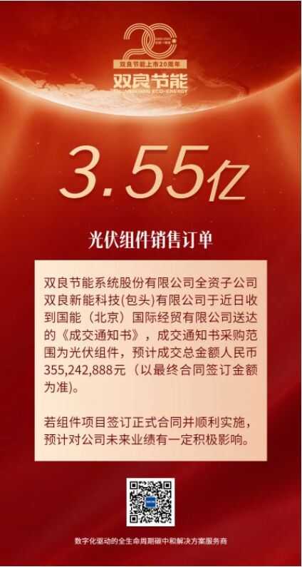 雙良節(jié)能簽訂3.55億元光伏組件銷售訂單