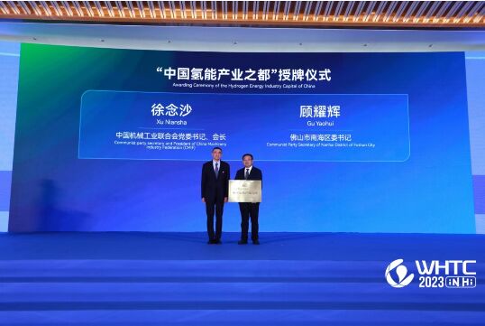 在本屆開幕式上舉行了“中國氫能產(chǎn)業(yè)之都”授牌儀式,中國機械工業(yè)聯(lián)合會黨委常委張克林宣讀《關(guān)于授予佛山市南海區(qū)“中國氫能產(chǎn)業(yè)之都”稱號的決定》。徐念沙向佛山南海區(qū)區(qū)委書記頒發(fā)“中國氫能產(chǎn)業(yè)之都”榮譽稱號。