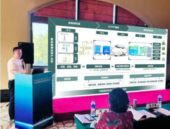 中氫源安聯(lián)合創(chuàng)始人、總裁朱成博士出席論壇,并發(fā)表了精彩的主題演講。他指出,盡管氫是宇宙中最常見的元素之一,但由于其活性極強和儲運成本較高的因素,大規(guī)模應用一直面臨挑戰(zhàn)。為此,中氫源安注重自主研發(fā)和技術創(chuàng)新,不斷深化研究并升級設備、產(chǎn)品及系統(tǒng),開發(fā)出適合大規(guī)模運輸?shù)陌踩袡C液儲運氫技術,逐步開拓更多應用場景。