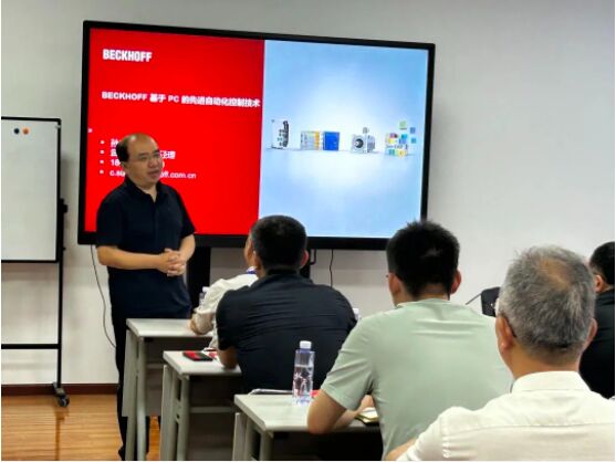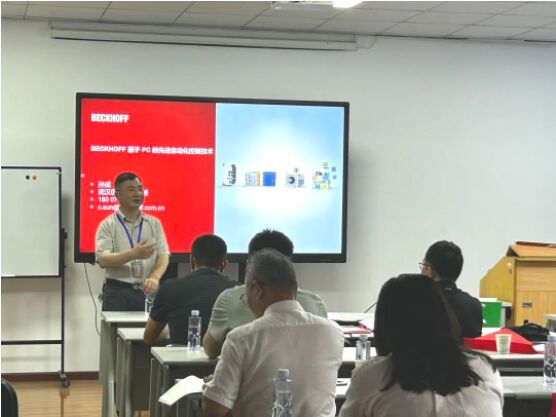 在培訓(xùn)的首日,華中科技大學(xué)機(jī)械學(xué)院實(shí)驗(yàn)教學(xué)中心主任王峻峰教授向前來(lái)參加培訓(xùn)的教師們表示歡迎,并為本次活動(dòng)致辭。隨后,倍福公司的產(chǎn)品專家向參會(huì)教師介紹了倍福 TwinCAT 3 軟件的功能,包括 IEC61131-3 編程標(biāo)準(zhǔn)、C++/MATLAB® 編程以及演示等軟件功能,引起了與會(huì)教師們濃厚的興趣。會(huì)議休息期間,一些教師與倍福的技術(shù)專家就 TwinCAT 3 平臺(tái)技術(shù)進(jìn)行了深入的探討,包括 PLC 編程、運(yùn)動(dòng)控制和 MATLAB® 硬件在環(huán)仿真等技術(shù)層面的應(yīng)用。