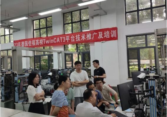 2023 年 5 月 31 日,華中科技大學(xué) — 倍福聯(lián)合實(shí)驗(yàn)室成功舉辦了首期 TwinCAT 3 平臺(tái)技術(shù)推廣及培訓(xùn)活動(dòng)。此次活動(dòng)旨在幫助全國(guó)高校和科研院所快速了解和掌握倍福的綜合性軟件技術(shù)平臺(tái) TwinCAT 3,同時(shí)促進(jìn)高校新工科建設(shè)改革。倍福的產(chǎn)品專家與華中科技大學(xué)機(jī)械學(xué)院黃弢教授團(tuán)隊(duì)共同為來(lái)自哈爾濱工業(yè)大學(xué)、河北工程大學(xué)等高等院校的近 30 名教師進(jìn)行了為期兩天的系統(tǒng)培訓(xùn)。