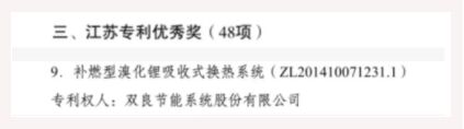 6月15日,江蘇省人民政府發(fā)布《省政府關(guān)于公布首屆江蘇專利獎的決定》,雙良節(jié)能系統(tǒng)股份有限公司憑借“補(bǔ)燃型溴化鋰吸收式換熱系統(tǒng)”喜獲“江蘇專利優(yōu)秀獎”。該獎項的獲評代表了江蘇省知識產(chǎn)權(quán)主管部門對雙良節(jié)能專利成果的高度認(rèn)可,也是對雙良節(jié)能持續(xù)投入研發(fā)創(chuàng)新和實施知識產(chǎn)權(quán)保護(hù)運用的充分肯定!