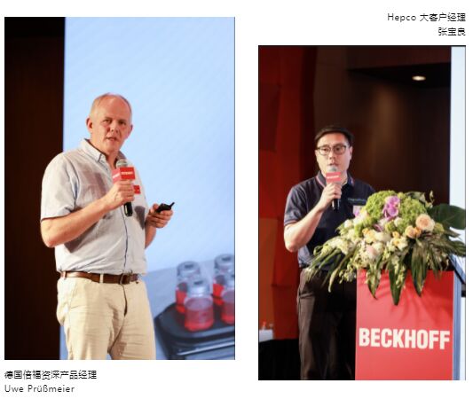 本次活動特別邀請了來自倍?偛康馁Y深產(chǎn)品經(jīng)理 Uwe Prüßmeier,與參會客戶共同探討了 XTS 和 XPlanar 在各種應用場景下的創(chuàng)新優(yōu)勢和未來前景, 并強調了 XTS 產(chǎn)品的經(jīng)濟型模塊改進和 NCT 產(chǎn)品的相關信息。倍福中國的 Motion 產(chǎn)品經(jīng)理蔡敏科和系統(tǒng)應用工程師孔惠增則從不同角度介紹了 XTS 和 XPlanar 的特點和優(yōu)勢,并用應用案例詳細解釋了革命性的柔性輸送系統(tǒng)如何實現(xiàn)高動態(tài)、高精度以及高柔性的運動控制。倍福中國數(shù)據(jù)科學與工程部經(jīng)理華長盛博士介紹了倍福人工智能解決方案可實現(xiàn)高節(jié)拍(達毫秒級)應用場景的性能優(yōu)化,如應用在 XTS 系統(tǒng)實現(xiàn)最優(yōu)路徑規(guī)劃,和在 XPlanar 系統(tǒng)中實現(xiàn)了動子的精確定位。這些充分展示了倍福高實時性人工智能解決方案在工業(yè)應用的優(yōu)勢。此外,海普克(Hepco)的大客戶經(jīng)理張寶良為現(xiàn)場觀眾介紹了環(huán)形導軌循環(huán)系統(tǒng)為 XTS 系統(tǒng)帶來的更多可能性。