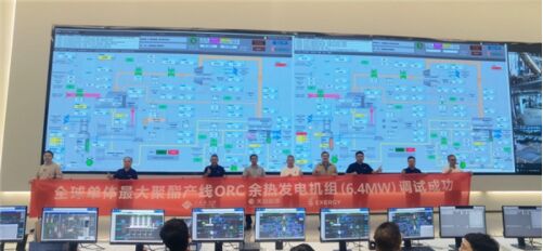 9月22日,三房巷聚酯余熱發(fā)電項(xiàng)目落成儀式成功舉行。本項(xiàng)目采用天加Exergy高效徑向離心透平ORC發(fā)電機(jī)組,總裝機(jī)為6.4MW,是全球單體最大聚酯產(chǎn)線ORC余熱發(fā)電機(jī)組、中國最大ORC余熱發(fā)電機(jī)組。