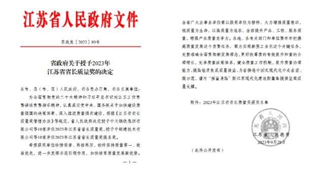 作為經(jīng)濟(jì)大省、制造業(yè)大省,江蘇歷來重視質(zhì)量強(qiáng)省建設(shè),發(fā)力打造的質(zhì)量和品牌綜合實(shí)力位居全國前列,江蘇省省長(zhǎng)質(zhì)量獎(jiǎng)是江蘇省政府設(shè)立的質(zhì)量領(lǐng)域最高獎(jiǎng)項(xiàng),包括“江蘇省省長(zhǎng)質(zhì)量獎(jiǎng)”和“江蘇省省長(zhǎng)質(zhì)量提名獎(jiǎng)”兩個(gè)獎(jiǎng)項(xiàng),主要授予全省范圍內(nèi)質(zhì)量管理模式先進(jìn)、成效卓越,體現(xiàn)標(biāo)桿引領(lǐng)作用的各類組織,每年評(píng)定一次,評(píng)定數(shù)量各不超過10個(gè)。