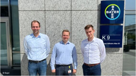 項目團隊:拜耳生產計劃工程師 Roger Rossmann 博士(中)與來自倍福流程工業(yè)部門的 Lennart Winkler(左)和 Sebastian Böse(右)