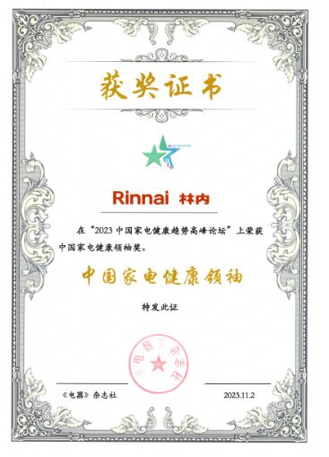 林內(nèi)榮獲本屆高峰論壇“中國家電健康領(lǐng)袖獎(jiǎng)”