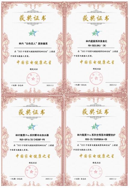 林內(nèi)榮獲采暖、熱水器和廚電領(lǐng)域的“中國家電健康之星”獎(jiǎng)項(xiàng)