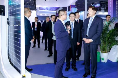 開幕式當(dāng)天,中國貿(mào)促進(jìn)會(中國國際商會)黨組成員、副會長于健龍;無錫市委常委、常務(wù)副市長蔣敏,原無錫市政協(xié)主席貢培興等領(lǐng)導(dǎo),來到雙良展臺參觀,雙良新能科技(包頭)有限公司總經(jīng)理葉建群向各位領(lǐng)導(dǎo)及參觀人員,詳細(xì)介紹了雙良在光伏氫儲領(lǐng)域的發(fā)展情況與貢獻(xiàn)。