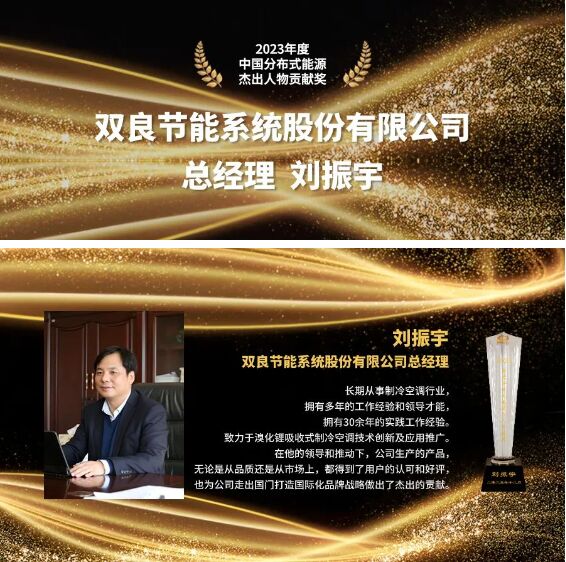 雙良節(jié)能系統(tǒng)股份有限公司總經理劉振宇榮獲“中國分布式能源杰出人物貢獻獎”殊榮。