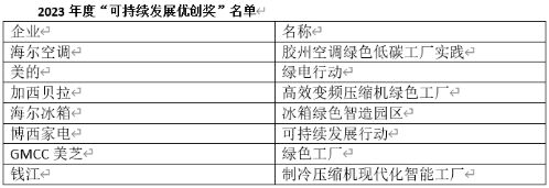 其中,海爾膠州空調(diào)綠色低碳工廠實(shí)踐、美的綠電行動(dòng)、加西貝拉高效變頻壓縮機(jī)綠色工廠、海爾冰箱綠色智造園區(qū)、博西家電可持續(xù)發(fā)展行動(dòng)、GMCC美芝綠色工廠、錢(qián)江制冷壓縮機(jī)現(xiàn)代化智能工廠獲得“可持續(xù)發(fā)展優(yōu)創(chuàng)獎(jiǎng)”。12款產(chǎn)品或解決方案獲得“低碳先鋒產(chǎn)品獎(jiǎng)”。