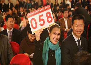 太陽(yáng)雨集團(tuán)董事長(zhǎng)徐新建及國(guó)際員工馬蘭在投標(biāo)現(xiàn)場(chǎng)