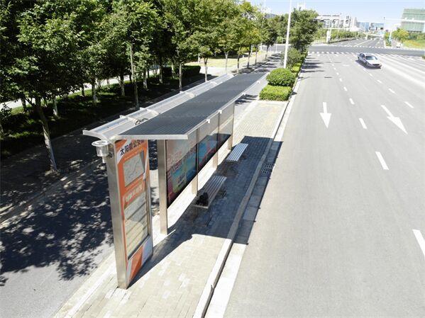 太陽(yáng)能裝置:小面積卻有大能量 該公交車(chē)站臺(tái)頂棚搭載的Sunflare圣暉萊柔性薄膜太陽(yáng)能電池組件,以太陽(yáng)光發(fā)電供給所需能源。只要有陽(yáng)光,車(chē)站就能自己發(fā)電。白天用于給液晶電子顯示屏幕供電,晚上則為候車(chē)乘客提供照明,使用中沒(méi)有任何污染,不僅給環(huán)境“減負(fù)”,也給市民出行提供了諸多便利。真正實(shí)現(xiàn)低碳節(jié)能、綠色出行。 公交站臺(tái)的頂棚上有5片柔性薄膜太陽(yáng)能電池組件拼合成的6平方米大小的電池板,總重量不超過(guò)25千克,與站臺(tái)頂部貼合緊密。整個(gè)安裝過(guò)程非常簡(jiǎn)便,不需要申請(qǐng)電網(wǎng)增容,也不需要額外架線(xiàn)或挖地施工。每單片組件的發(fā)電功率為180W,整個(gè)電池板每天平均日照5小時(shí)即可發(fā)電4.5度。也就是說(shuō)這個(gè)總功率為900W的6平方米大小的太陽(yáng)能發(fā)電公交車(chē)站預(yù)計(jì)每月可產(chǎn)生135度電量,可滿(mǎn)足南京市一般家庭的月度用電。相當(dāng)于減少了每年約40,000千克的碳排放量,與火力發(fā)電相比,則等于多種植了約6畝的森林。