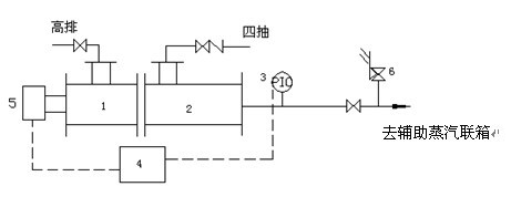 在發(fā)電生產(chǎn)過程中,大部分蒸汽直接用于發(fā)電,同時,為了生產(chǎn)的需要,還要從汽輪機抽取部分蒸汽用于其他用途。如北方地區(qū)電廠,鍋爐一般都裝有蒸汽暖風機,冬季廠房采暖也要用大量的蒸汽,南方電廠夏季采用溴化鋰制冷也需要低壓蒸汽。另外,鍋爐油槍的霧化,鍋爐吹灰等,還有對于300~600MW機組鍋爐給水泵用小汽輪機拖動。小汽輪機的驅動蒸汽,也要用大汽輪機的抽汽。這些非發(fā)電用蒸汽一般都要求有較穩(wěn)定的壓力,而汽輪機隨著電負荷的變化,其抽汽壓力也會變化,為了滿足非發(fā)電用蒸汽對壓力穩(wěn)定的要求,同時降低非發(fā)電用汽對機組經(jīng)濟性的影響,設計上對非發(fā)電用汽一般都采用兩種蒸汽做汽源,在高負荷時用低壓抽汽作汽源,在低負荷時用高壓抽汽減壓供汽。以國內(nèi)300W和600MW電廠用汽系統(tǒng)的典型設計為例,為保證廠用汽系統(tǒng)壓力的穩(wěn)定,設計上采用中壓缸排汽(簡稱中排)和高壓缸排汽(簡稱高排)兩路汽源,當機組負荷較高時,由中排供汽,當機組負荷較低時,由于中壓缸排汽壓力降低,不能滿足廠用汽的需要,改由高排減壓供汽。對于亞臨界300MW和600MW機組,其高壓缸和中壓缸排汽溫度基本上相同,在330℃左右,但壓力相差較大,作功能力有較大的差別,高排蒸汽經(jīng)減壓供應輔助蒸汽,白白損失了高排蒸汽的作功能力,降低了整個機組的經(jīng)濟性。 如果能用高排蒸汽的壓力能將中排蒸汽的壓力提高滿足輔助用蒸汽的需要,則可以減少高排蒸汽的用汽量,提高整個機組的經(jīng)濟性。 汽輪機壓力匹配器是把高、低蒸汽混合、輸出中等壓力蒸汽的設備。 壓力匹配器的原理:壓力匹配器的作用是利用高壓蒸汽有用能,提高低壓蒸汽的壓力,兩者混合,形成中等壓力的蒸汽。因此壓力匹配器是輔助蒸汽聯(lián)箱節(jié)能的理想設備。 壓力匹配器在輔助蒸汽系統(tǒng)中的安裝系統(tǒng)圖如下: