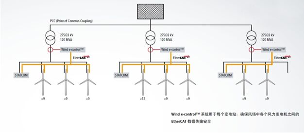 為了確保風(fēng)場擴(kuò)建后能夠?yàn)樘K格蘭格拉斯哥市可靠地供電,運(yùn)營商使用了EtherCAT高速通訊系統(tǒng)及相應(yīng)的控制組件。 圖片顯示了一組PCC(公共連接點(diǎn)) 近日,歐洲風(fēng)能協(xié)會發(fā)布了一些預(yù)測數(shù)據(jù):歐洲風(fēng)電將取得進(jìn)一步的動態(tài)發(fā)展,到 2020 年,風(fēng)電總裝機(jī)容量將實(shí)現(xiàn) 64%的增長。作為這一發(fā)展的組成部分,數(shù)十臺總輸出量為 217 兆瓦的風(fēng)力發(fā)電機(jī)最近由法國阿爾斯通公司安裝在了蘇格蘭風(fēng)場中。極速EtherCAT通訊網(wǎng)絡(luò)和Beckhoff相應(yīng)的 I/O 組件構(gòu)成這一歐洲最大陸上風(fēng)電項(xiàng)目的通訊主干。 阿爾斯通這一最新的風(fēng)電項(xiàng)目主要在蘇格蘭格拉斯哥附近擴(kuò)建的Whitelee風(fēng)場中運(yùn)行。新增的 217 兆瓦的裝機(jī)容量,足夠滿足 124,000 戶家庭的用電需求。此次陸上風(fēng)場的擴(kuò)建為整個歐洲大陸設(shè)立了新標(biāo)準(zhǔn),此外,這也是阿爾斯通功能強(qiáng)大的 ECO 100 風(fēng)力發(fā)電機(jī)的第一個大型項(xiàng)目。阿爾斯通在該風(fēng)場總共安裝了 69 臺3 兆瓦的 ECO 100 風(fēng)力發(fā)電機(jī),6 臺1.67 兆瓦的 ECO 74 風(fēng)力發(fā)電機(jī)。 先進(jìn)的控制技術(shù)確保可靠的風(fēng)場運(yùn)營 阿爾斯通的 Wind e-control™ 系統(tǒng)負(fù)責(zé)風(fēng)場內(nèi)的控制任務(wù),如電壓、功率和頻率控制。例如,為了檢查風(fēng)電場并網(wǎng)轉(zhuǎn)換點(diǎn)處的無功功率,Wind e-control™ 系統(tǒng)從風(fēng)場采取了各種措施。每個相應(yīng)國家的電網(wǎng)準(zhǔn)則都可以通過此控制系統(tǒng)可靠地實(shí)現(xiàn)。電網(wǎng)準(zhǔn)則中描述的要求是為了保證電網(wǎng)的穩(wěn)定,在可再生能源產(chǎn)業(yè)不斷擴(kuò)大時(shí)這是最重要的。除此之外,控制系統(tǒng)允許在控制室進(jìn)行現(xiàn)場運(yùn)營管理或通過與 SCADA 系統(tǒng)進(jìn)行數(shù)據(jù)通訊遠(yuǎn)程進(jìn)行管理。Wind e-control™ 系統(tǒng)已首次在這個風(fēng)場中安裝并成功應(yīng)用。
