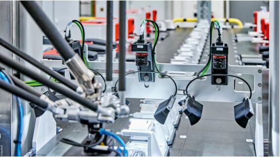 橫立于三條通道上的視覺系統(tǒng),會在每個端子模塊通過時捕捉其 DataMatrix 碼,然后將其與 XPlanar 動子的 ID 聯(lián)系起來。
