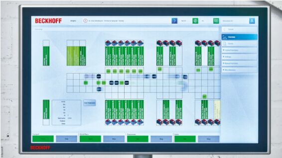 該系統(tǒng)是一個能夠很好地說明基于 PC 的控制技術(shù)可以用來執(zhí)行各種任務(wù)和功能的典型例子。除了一臺 C6670 控制柜式工業(yè)服務(wù)器負責(zé)控制和協(xié)調(diào) 100 塊平面模塊以及其上的 33 個動子之外,還有 10 臺 C6032 超緊湊型工業(yè) PC 用于控制其它系統(tǒng)組件。Delta 機器人的自動化通過 AX8000 多軸伺服系統(tǒng)和 AM8000 伺服電機實現(xiàn)!拔覀兪褂 AMI8100 驅(qū)控一體伺服電機送入和彈出托盤,因為它們結(jié)構(gòu)非常緊湊,只需 EtherCAT 和 48 V 電壓即可運行。”Ulrich Brockhaus 說道。編程工站中的 AA1000 線性執(zhí)行機構(gòu)用于接觸端子模塊;測試工站中的 AA3000 電動缸用于載入端子模塊載具。整個系統(tǒng)的安全都由 TwinSAFE 保障。TwinCAT Vision 可以捕捉到 DataMatrix 碼。車間內(nèi)共有四個測試柜,每個測試柜中都安裝了約 40 個 ELM 系列的 EtherCAT 測量端子模塊。此外,測試柜中還使用了各種 EL 系列的 EtherCAT 端子模塊!霸谶@個項目中,基于 PC 的控制技術(shù)為我們帶來了很多便利,并為我們留下了進一步擴展的選項!盡ichael Golz 說道。