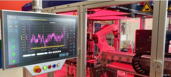 壓印是傳感器隔離膜片生產(chǎn)過程中一個不可或缺的的中間加工步驟,凱樂公司項目經(jīng)理 Florian Wernli 解釋道:“我們的大部分壓力傳感器都封裝在充油不銹鋼外殼中。隔離膜片對于通過油將周圍介質(zhì)的壓力傳輸至傳感器內(nèi)的測量芯片中來說至關(guān)重要!边@就需要通過一臺性能強大的自動壓印機將隔離膜片壓印成特殊的形狀。凱樂公司開發(fā)與生產(chǎn)裝備部 Bruno Thalmann 補充道:“在經(jīng)過泄漏檢測、用壓縮空氣清潔和熱平衡處理后,我們在同一工藝步驟中使用氫傳感器在高壓條件下進行壓印并進行確定性泄漏試驗。隨后使用圖像處理和人工智能進行誤差檢測!眽河C的核心部分是一臺 KUKA 機器人,它用作拾放單元,將坯件送至加工位置,并將已完成的工件分成合格品(OK)和不合格品(NOK)兩個部分。