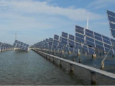 水下養(yǎng)魚,水上發(fā)電—“漁光互補(bǔ)”—這種新型的光伏發(fā)電模式已在上海松江扎根!耙坏貎捎谩钡男问酵癸@了社會效益、經(jīng)濟(jì)效益和環(huán)境效益的共贏。