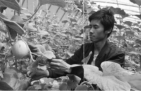 廣至鄉(xiāng)村民王正秀正在為銷往國(guó)外的訂單流星瓜打枝