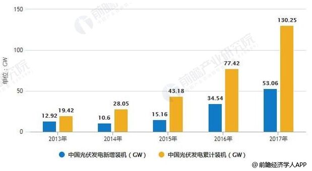 2013-2017年中國光伏發(fā)電新增、累計裝機統(tǒng)計情況