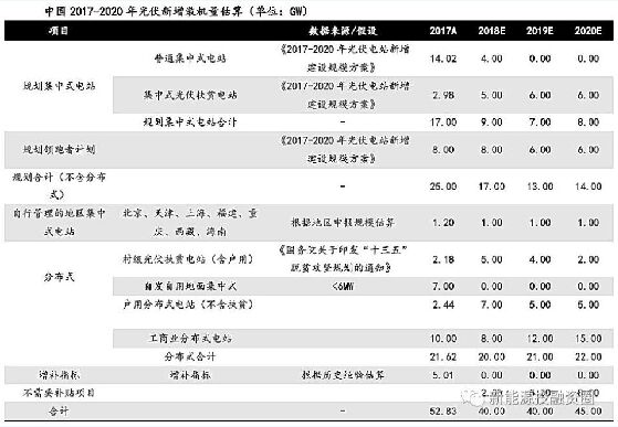 我國光伏裝機維持高速增長態(tài)勢,2012年我國光伏新增裝機3.56GW,累計裝機7.06GW。2017年我國光伏新增裝機53.1GW,同比增長53.7%,五年復(fù)合增長率為71.7%,累計裝機達到130.0GW,同比增長66.5%,五年復(fù)合增長率為79.1%。2017年我國分布式光伏爆發(fā)式增長,全年分布式新增裝機19.3GW,同比增長357%,累計裝機達到29.7GW,占比達到22.8%。 未來三年裝機需求回落,分布式、光伏扶貧和領(lǐng)跑者計劃成為增長主要看點。受17年高基數(shù)及531政策影響,2018-2020年國內(nèi)光伏裝機需求有所回落,根據(jù)估算,2018-2020年新增光伏裝機需求分別為40GW、40GW、45GW,合計約125GW。2018-2020年集中式電站合計新增裝機量分別約為17GW、13GW、14GW,分布式電站合計新增裝機量分別約為20GW、21GW、22GW,另外,每年自行管理的地區(qū)集中式電站約3GW。新增裝機之中領(lǐng)跑者計劃合計約20GW,光伏扶貧合計約28GW,分布式(不含扶貧)合計約52GW。