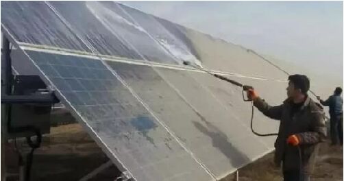 光伏組件的清洗要點(diǎn) 1光伏組件清潔的必要性 光伏發(fā)電系統(tǒng)在運(yùn)行中,要經(jīng)常保持光伏組件采光面的清潔。因?yàn)榛覊m遮擋是影響光伏發(fā)電系統(tǒng)發(fā)電能力的第大 因素, 其主要影響有: ①遮蔽太陽光線,影響發(fā)電量 ②影響組件散熱,從而降低組件轉(zhuǎn)換效率 ③帶有酸堿性的灰塵長時間沉積在組件表面,侵蝕組件玻璃表面、造成玻璃表面粗糙不平,使灰塵進(jìn)一步積聚, 同時增加玻璃表面對陽光的漫反射,降低組件接受陽光的能力 ④組件表面長期積聚的灰塵、樹葉、鳥糞等,會造成組件電池片局部發(fā)熱,造成電池片、背板燒焦炭化,甚至引起火災(zāi)。所以,組件需要不定期地進(jìn)行擦拭清潔。 2光伏組件的清潔方式 光伏組件的清潔可分為:普通清掃和水沖清洗兩種方式。如組件積有灰塵,可用干凈的線撣子或抹布對組件表面附著的干燥浮塵、樹葉等進(jìn)行清掃。對于緊附在玻璃表面的硬性異物,如泥土、鳥糞、粘稠物體,則可用稍微硬些的塑料或木質(zhì)刮板進(jìn)行刮除處理,防止破壞玻璃表面。如有污垢清掃不掉時,可用清水進(jìn)行沖洗。清洗可使用拖把或柔性毛刷來進(jìn)行,如遇到油性污物等,可用洗潔精或肥皂水等對污染區(qū)域進(jìn)行單獨(dú)清洗。清洗完畢后可用干凈的抹布將水跡擦干。切勿用有腐蝕性的溶劑清洗或用硬物擦拭。目前,組件清潔方式主要有人工清潔、灑水車、智能機(jī)械等方式。 3光伏組件清洗注意事項(xiàng) ①光伏組件的清洗一般選擇在清晨、傍晚、夜間或陰雨天進(jìn)行。主要考慮以下幾個原因: a.避免在高溫和強(qiáng)烈光照下擦拭清洗組件可能造成的對人身的電擊傷害以及對組件的破壞; b.防止清洗過程中因?yàn)槿藶殛幱霸斐晒夥疥嚢l(fā)電量的損失,甚至發(fā)生熱斑效應(yīng): c.中午或光照較好時組件表面溫度相當(dāng)高,防止冷水激在玻璃表面引起玻璃炸裂或組件損壞。同時在早晚清洗時,也需要選擇陽光暗弱的時間段進(jìn)行。也可以考慮利用陰雨天進(jìn)行清洗,因?yàn)橛薪邓膸椭逑催^程相對高效和徹底。 ②光伏組件鋁邊框及光伏支架或許有鋒利的尖角,在清洗過程中需注意清洗人員安全,應(yīng)穿著佩戴工作服、帽子、絕緣手套等安全用品,防止漏電、碰傷等情況發(fā)生。在衣服或工具上不能出現(xiàn)鉤子、帶子、線頭等容易引起牽絆的部件。 ③在清洗過程中,禁止踩踏或其他方式借力于光伏組件、導(dǎo)軌支架、電纜橋架等光伏系統(tǒng)設(shè)備。 ④嚴(yán)禁在大風(fēng)、大雨、雷雨或大雪天氣下清洗光伏組件。冬季清潔應(yīng)避免沖洗,以防止氣溫過低而結(jié)冰,造成污垢堆積:同理也不要在面板很熱時用冷水沖洗。 ⑤嚴(yán)禁使用硬質(zhì)和尖銳工具或腐蝕性溶劑及堿性有機(jī)溶劑擦拭光伏組件。禁止將清洗水噴射到組件接線盒、電纜橋架、匯流箱等設(shè)備。清潔時水洗設(shè)備對組件的水沖擊壓力必須控制在一定范圍內(nèi),避免沖擊力過大引起組件電池片的隱裂。