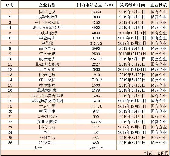 根據(jù)國(guó)家能源局官宣數(shù)據(jù),截止2019年三季度,中國(guó)光伏電站累計(jì)裝機(jī)規(guī)模已突破190GW。在這190GW的光伏電站裝機(jī)背后,中國(guó)光伏行業(yè)也經(jīng)歷了跌宕起伏的發(fā)展時(shí)期,其中僅2017年一年的新增裝機(jī)規(guī)模就占總裝機(jī)容量的28%。經(jīng)歷了2016-2018年的高峰期之后,2019年將成為我國(guó)光伏電站行業(yè)發(fā)展的轉(zhuǎn)折點(diǎn)之一,放緩的增速以及投資企業(yè)角色的轉(zhuǎn)變,正帶來(lái)一系列新的變化。 本文統(tǒng)計(jì)了26家光伏投資企業(yè)的裝機(jī)規(guī)模,包括14家國(guó)有企業(yè)及12家民營(yíng)企業(yè)。26家光伏企業(yè)在國(guó)內(nèi)持有光伏電站的總規(guī)模為69.2GW,占目前全國(guó)光伏電站累計(jì)裝機(jī)規(guī)模的36.4%。 作為光伏電站投資領(lǐng)域的“巨無(wú)霸”,國(guó)家電投毫無(wú)疑問(wèn)的位列榜首,截至2019年7月底,光伏電站持有量已超過(guò)15GW;其次是協(xié)鑫新能源,截止2019年6月30日,國(guó)內(nèi)電站持有總量達(dá)7039MW,位列民營(yíng)企業(yè)排名第一;此外,共計(jì)有19家企業(yè)光伏電站持有量超過(guò)1GW。 從下表統(tǒng)計(jì)的企業(yè)來(lái)看,國(guó)有企業(yè)累計(jì)電站持有量為40820MW、民營(yíng)企業(yè)累計(jì)電站持有量為28390MW,國(guó)企規(guī)模略高。但很明顯,經(jīng)歷2019年之后,這樣的情況將發(fā)生較大的變化。 表1:26家光伏投資企業(yè)裝機(jī)規(guī)模