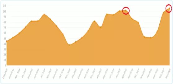 圖1:2018年1月-2020年3月每月光伏發(fā)電量